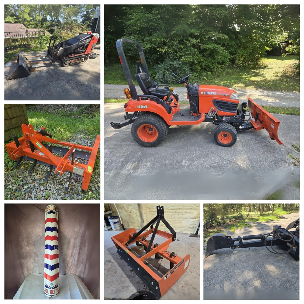 Online-only estate auction featuring Kubota tractor and implements, many new-in-box items, tools, household goods, and unique collectibles from a well-kept, non-smoking home. Auction closes October 12th. Preview October 9th, pickup October 14th. Reading, MI.